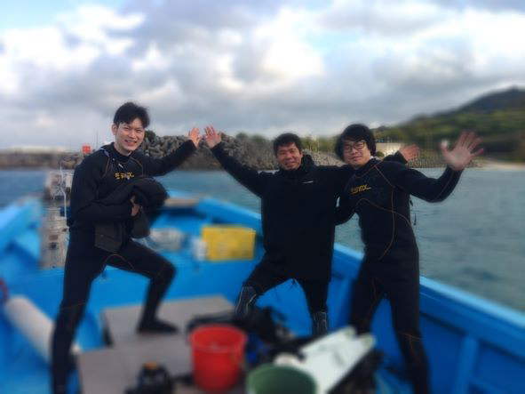 | 天 候 曇 気 温 15度 水 温 22度 透視度 15m 今日はスタッフも船長もゲスト様も皆さん神奈川出身です。 本部で話さないような、神奈川のローカルな話に盛り上がっています。 IOPの話など、とても懐かしいです。 さて、昨日は南風で気温も上がり、すっかり春の陽気でしたが、一夜明けて季節通りの冬に戻りました。 ダイバーが多いなあ、と思ったら祝日という事に気が付きました。 ミジュンは、今日も大群で居て、初めてゴリラチョップを訪れるダイバーの皆さんには、驚きを与えていました。 ![]() 海が荒れて、潜れる場所が少ない日でしたが、それでも3ダイブを楽しんだ1日でした。 本部でダイビング! GO DIVE! |