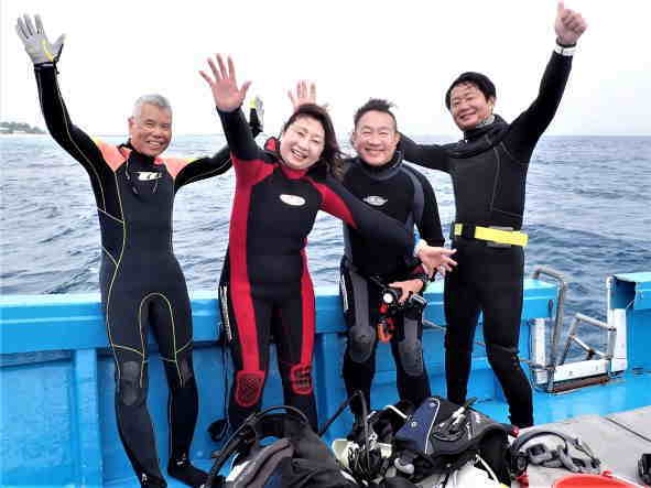 | 天 候 曇 ・ 雨 気 温 27度 透視度 30m 水 温 24度 今日は、恩納村から「オーシャンアドベンチャー」様そして、那覇から「ツッキーダイブ」様、が、シードアー号をご利用くださいました。 今日は、アドヴァンスド・オープンウォーター・ダイバー講習の方や、オープンウォーターダイバーコースが終わったばかりの現役バリバリの方が、お見えです。 |