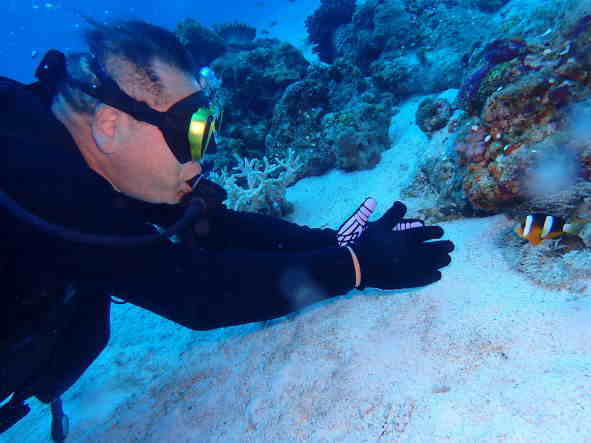 | 天 候 晴 気 温 28度 水 温 24度 透視度 30m 最近は、まだドライスーツの方もいますが、ウェットスーツの方が増えてきました。 先日、シーガルで潜っているダイバーを見つけて、「外人は、凄いなあー。」と、思ったら次男の海月だったので、ビックリです。 「寒くないのかあー?」、と聞いたら「平気だよ。」って言うので、私もシーガル+フードで、潜ってみたら、意外と平気でウェイトの少なくて済むことに、喜びを覚えてしまい、最近では私もシーガルです。 ハナヒゲウツボの成魚は、今日も居てくれました。 ![]() ちょっと深いのですが、ホワイトソックスも、ずっと居てくれます。 私が水納島でホワイトソックスを見るのは、2009年以来実に15年ぶりです。 潜っているだけで、気持ちが和むのは何故か? いつも答えは見つかりませんが、ダイビングは大好きです。 ![]() 本部でダイビング! GO DIVE! |