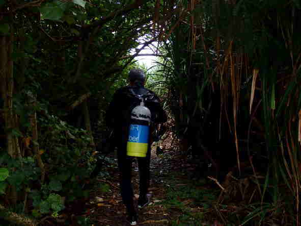 | 天 候 雨 気 温 25度 水 温 24度 透視度 15~20m 今日は、風が強いので久しぶりにビーチのダイビングをしました。 この場所に来るのに、初めての方は心が折れそうな道を通ってきます。 車から降りると、今度は蚊との戦いが始まります。 服を脱いだら、素早く虫よけスプレーを体中に吹き付けないと、とんでもない事になります。 そして、ゆっくりスーツを着た二人合わせて140歳ダイバー。 今日の私のバディーは私の先輩で、某ダイビングメーカーでダイバーに一番人気のあるマ〇ティスというマスクを設計していた方です。 ![]() この写真だけ見ると、海と関係なく何かの訓練トレーニングのように見えますが、実はこの先に海が開けています。 ![]() ここのサンゴは、まるで日本庭園の様で、形が整っていていつも見とれてしまいます。 ![]() のサンゴ、実はコブシメが産卵に利用するユビエダハマサンゴで、今日もコブシメが居ました。 メスはいませんでしたが、オス同士がこの場所をめぐって激しく争っています。 ![]() 私たちが傍に居ても「こっちは、それどころでは無いっ。」と、バトルは5分近くも続きました。 ![]() とてもへんぴな場所ですが、久しぶりのビーチダイビングは、とても楽しかったです。 本部でダイビング! GO DIVE! |