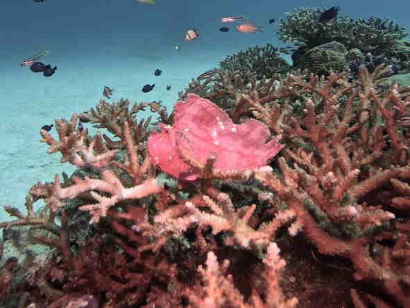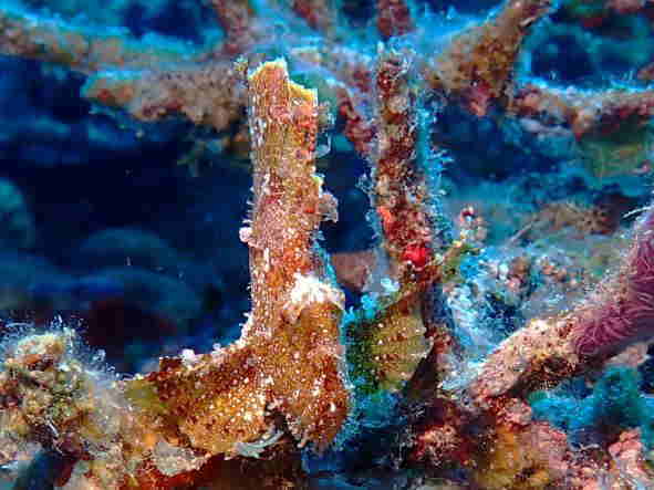 | 天 候 晴 気 温 33度 水 温 28度 透視度 20m 台風23号の影響で、遠出の出来ない日が続いています。 今日は、瀬底島と本部でダイビングをしています。 最近、崎本部でジョーフィッシュが見れる噂を聞いて、見に行きました。 何と、4個体も見れてびっくりしました。 更に、赤い可愛いカエルアンコウまで見れて、この場所が今は一番面白いのではと、思った1日でした。 本部でダイビング! GO DIVE! |