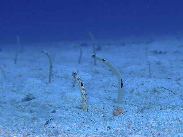 | 天 候 晴 気 温 33度 水 温 28度 透視度 30m 最近、沖縄自動道での交通事故が、続いています。 夏休みが終わり、9月の連休も終われましたが、相変わらず車が多いのは、車社会の沖縄の特徴です。 今日も、事故渋滞に出会いゲスト様が、ご集合に遅れてこられましたが、どうぞ安全運転でお越しください。 今日は、ハダカハオコゼ3個体を撮りに行きましたが、あいにく2個体しか見つけらけませんでした。 周りの色に同化しているので、見つけるのに少し時間が掛かりました。 チンアナゴは、まるでツクシのようにあちこちから顔を出していました。 チンアナゴを撮るのに、どの様に切り取ろうか悩んでしまうほど、沢山のチンアナゴがいます。 本部でダイビング! GO DIVE! |