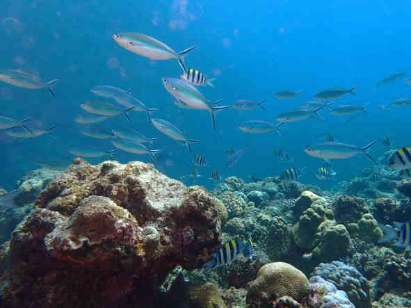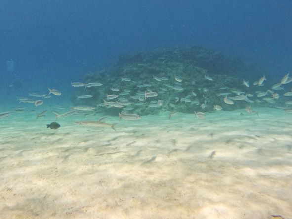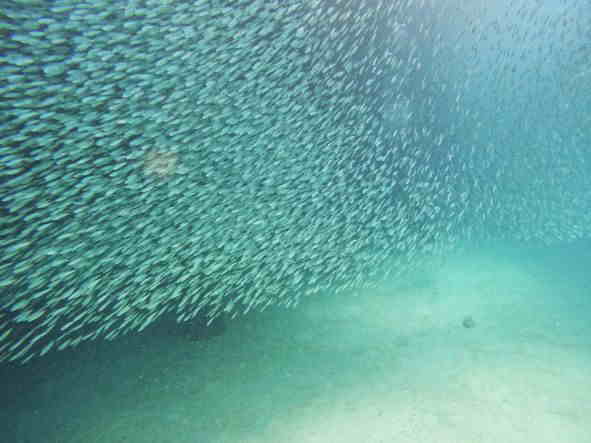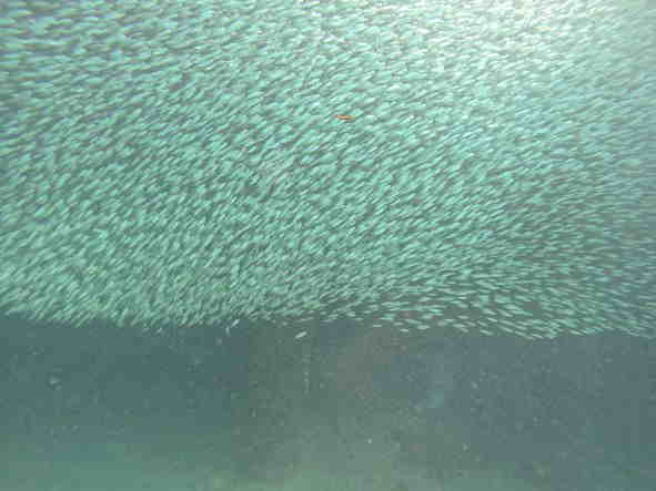 | 天 候 晴 気 温 33度 水 温 28度 透視度 20~25m 台風22号の影響は、最低限に収まりましたが、北寄りの風が吹いて水納島に行けない日が続いています。 昨日に続き今日も瀬底島のラビリンスに入りました。 トンネルの中は、ハタンぽが群れてています。 ライトで照らすと、明かりから逃げるように、姿を隠しました。 今は、シードアー号が停泊している港でも、ミジュンとガチュンの大群がいます。 崎本部では、今日もミジュンとガチュンの大群に覆われて、ダイバーの姿が全く隠れてしまいます。 この群れの下を、普段は水面近くを泳ぐグルクマーが海底を泳ぐ光景が見れました。 この大群は、一見の価値が有ります。 本部でダイビング! GO DIVE! |