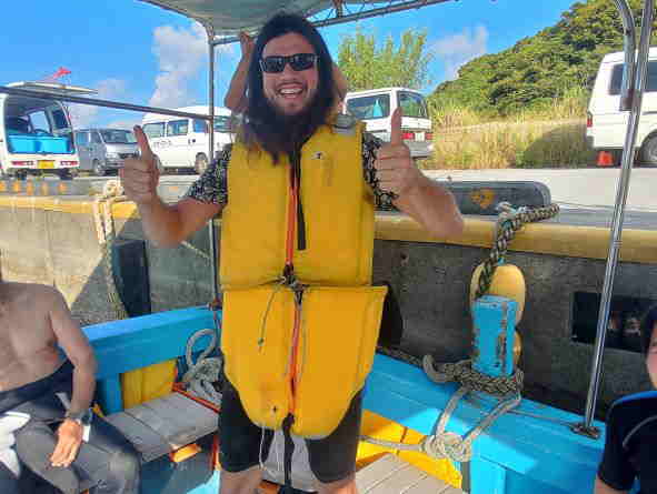 | 天 候 晴 気 温 32度 水 温 28度 透視度 30m 早いもので、10月になりましたね。 今日も、水納島はとてもきれいで、風もなくべた凪です。 毎日海に出ていますが、今日もゲスト様との出会いがとても楽しかったです。 今日も、船長業務ですが、ただ船長だけしているのは、つまらないので、外国の方とも出来るだけ積極的に、コミュニケーションを取るようにしています。 最近は、リピーターの外国の方も来て下さり、嬉しくなります。 ダイビングが終わった後に、「一緒に写真を撮りましょう。」と、声を掛けて下さる方も多いです。 そんな私の嬉しい気持ちが、そのまま今日の夕日に出ていました。 皆さん、有難うございました。 本部でダイビング! GO DIVE! |